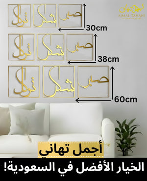 Premium 3-piece Islamic wall décor featuring Sabr, Shukar & Tawakkal in elegant Arabic calligraphy. A perfect blend of faith and modern design.