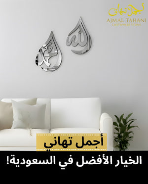 Enhance your living space with this elegant Allah & Muhammad (ﷺ) Islamic Wall Art Set, crafted in a luxurious silver mirror finish. Designed with modern Arabic calligraphy, this two-piece wall décor brings spirituality, beauty, and sophistication to any interior.