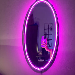 Discover the endless possibilities of blending style and artistry with our Oval Neon Selfie Mirror for room decor. Embrace the allure of Neon Lights and immerse yourself in its captivating radiance.