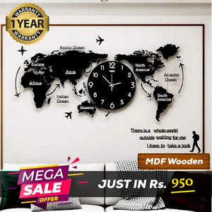 Discover the perfect World Map Wall Clock that invites you to explore the world's beauty through the passage of time. With every glance, experience the fusion of aesthetics and exploration, and explore how our pieces can transform your living spaces. Choose PyariWalls.pk to enhance your decor through exceptional Wall Clocks that resonate with your passion for discovery.